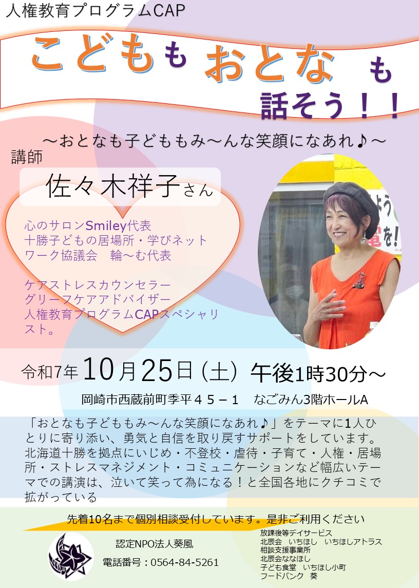 <連絡先>NPO法人葵風 (担当:月東(がっとう)、柴田)